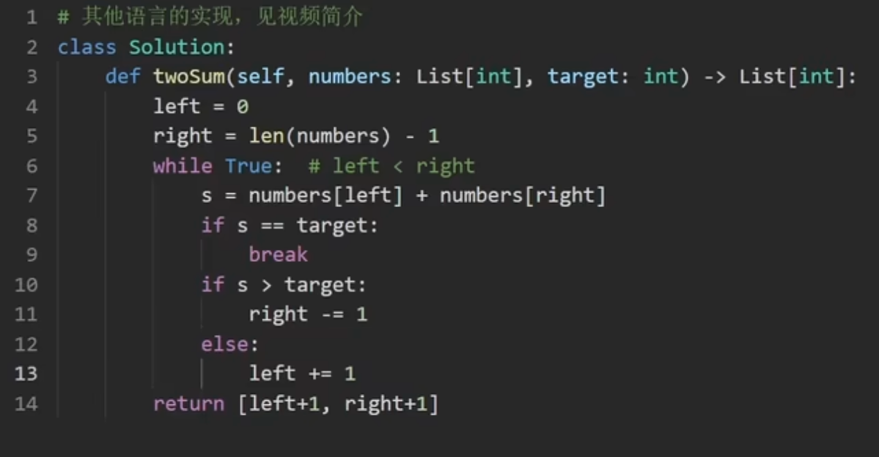 - 核心算法:使用“相向双指针”技巧。左指针从头,右指针从尾,根据当前和与目标值的关系移动指针,时间复杂度为 O(n)。