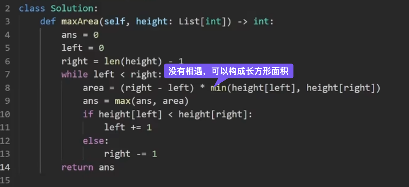 - 关键点:每次移动较低的指针,因为容积受限于较短的边。