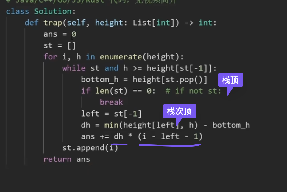 ans += preMax - height[left] // 前缀最大-当前高度