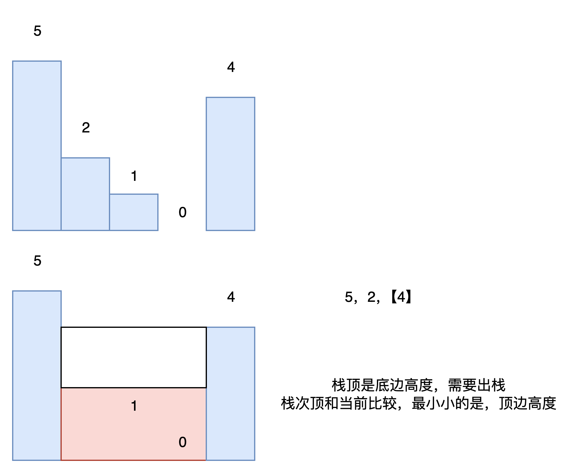 5 2 【4】 5 和 4 的下标之差 -1等于面积宽 5 4的最小值 时顶边的高度 2 是底边的高度