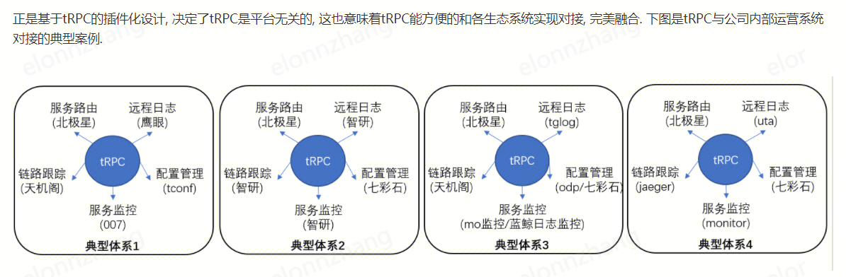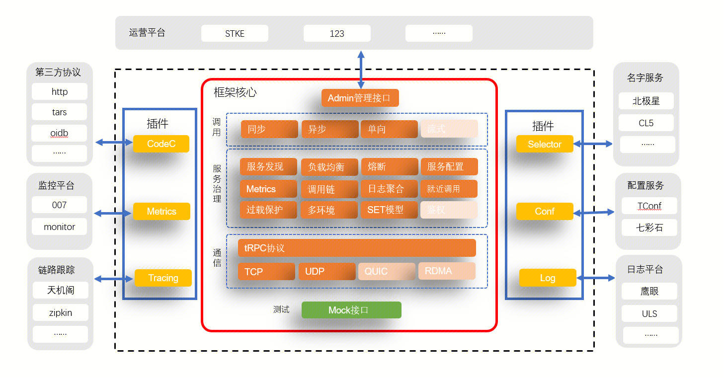 - 通过tRPC插件生态, 业务自己选择服务治理体系, 实现和存量系统对接
